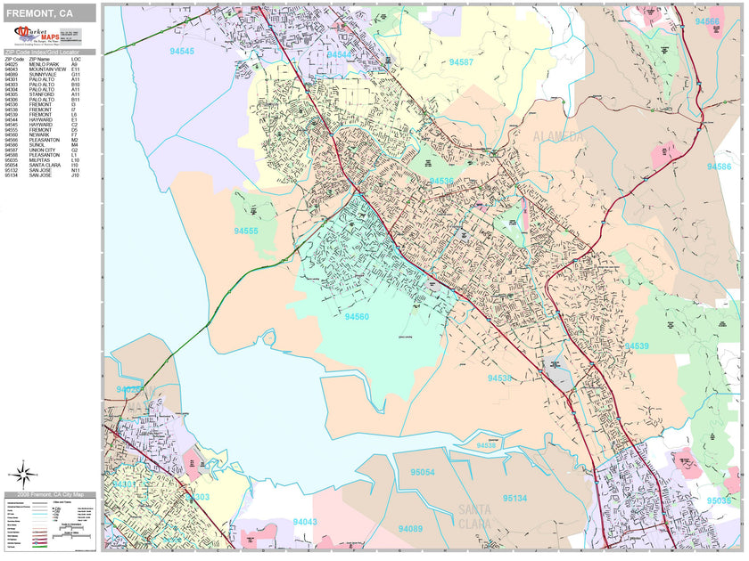 Fremont, CA Postal Code Map Premium MarketMAPS
