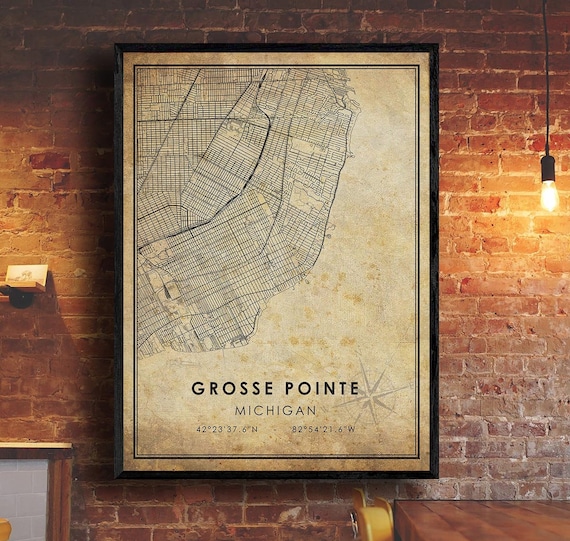Grosse Pointe Map Print Grosse Pointe Map Michigan Map Art Grosse