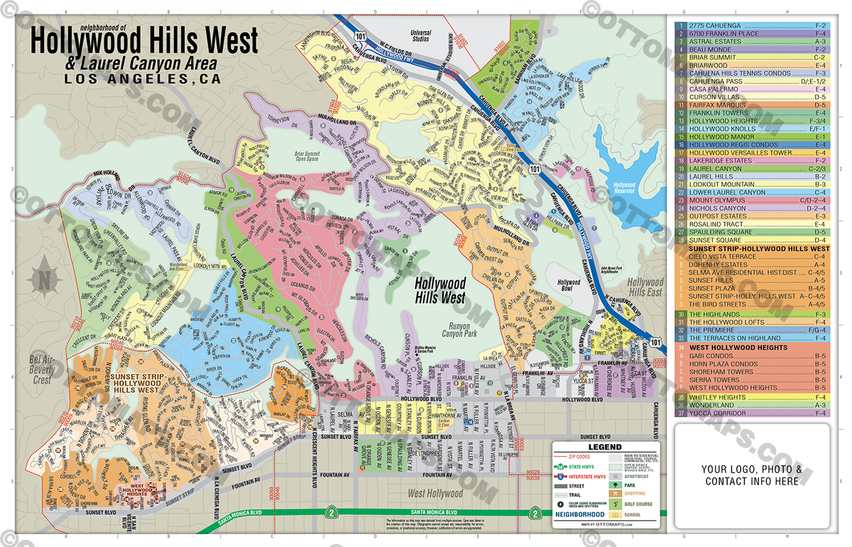 Hollywood Hills West Map and Laurel Canyon Area Map, Los Angeles