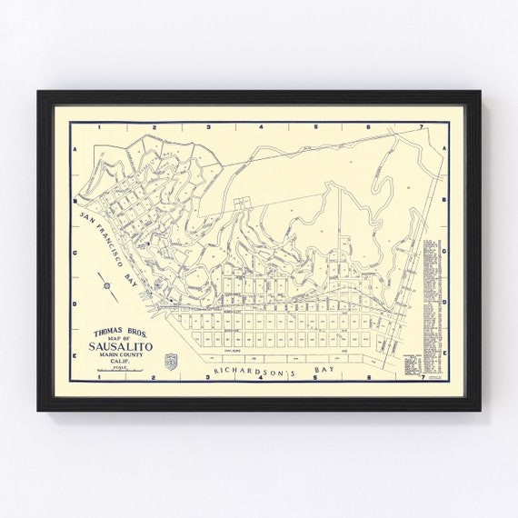 Sausalito Map 1920 Old Map of Sausalito California Art Vintage