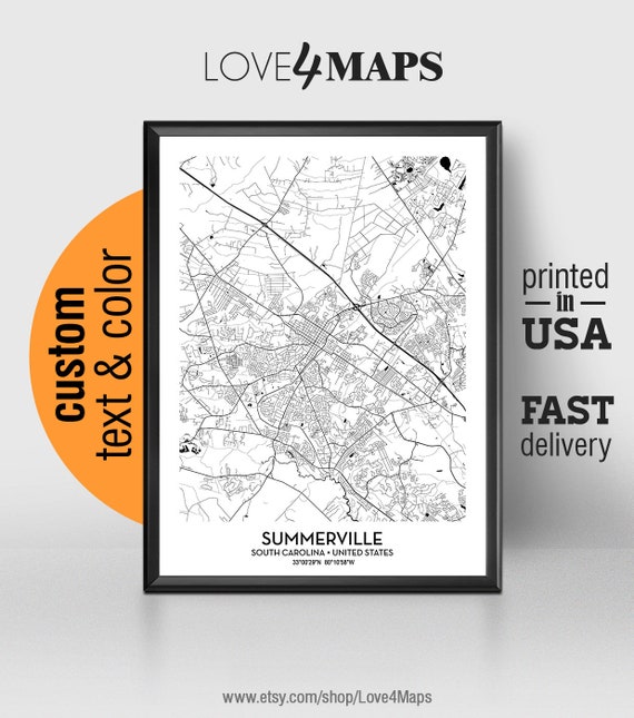 Buy Summerville, South Carolina Street Map Wood Wall Decor Wood